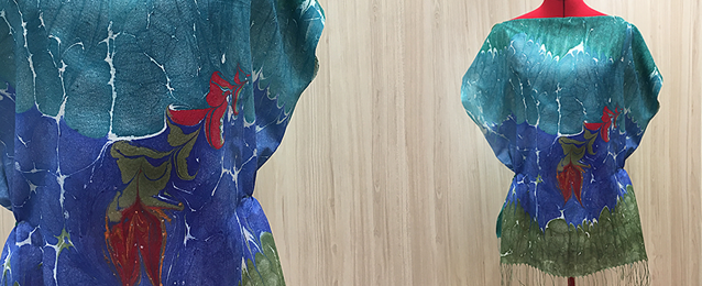 Ebru desenli ipek kumaştan çok şık bluz yapımı.