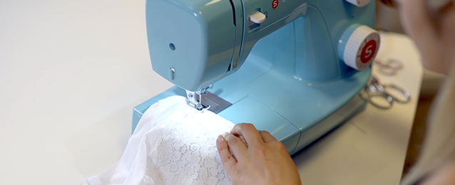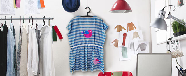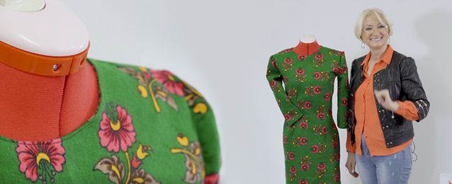 Çiçek desenli kumaştan çok şık elbise yapımı.